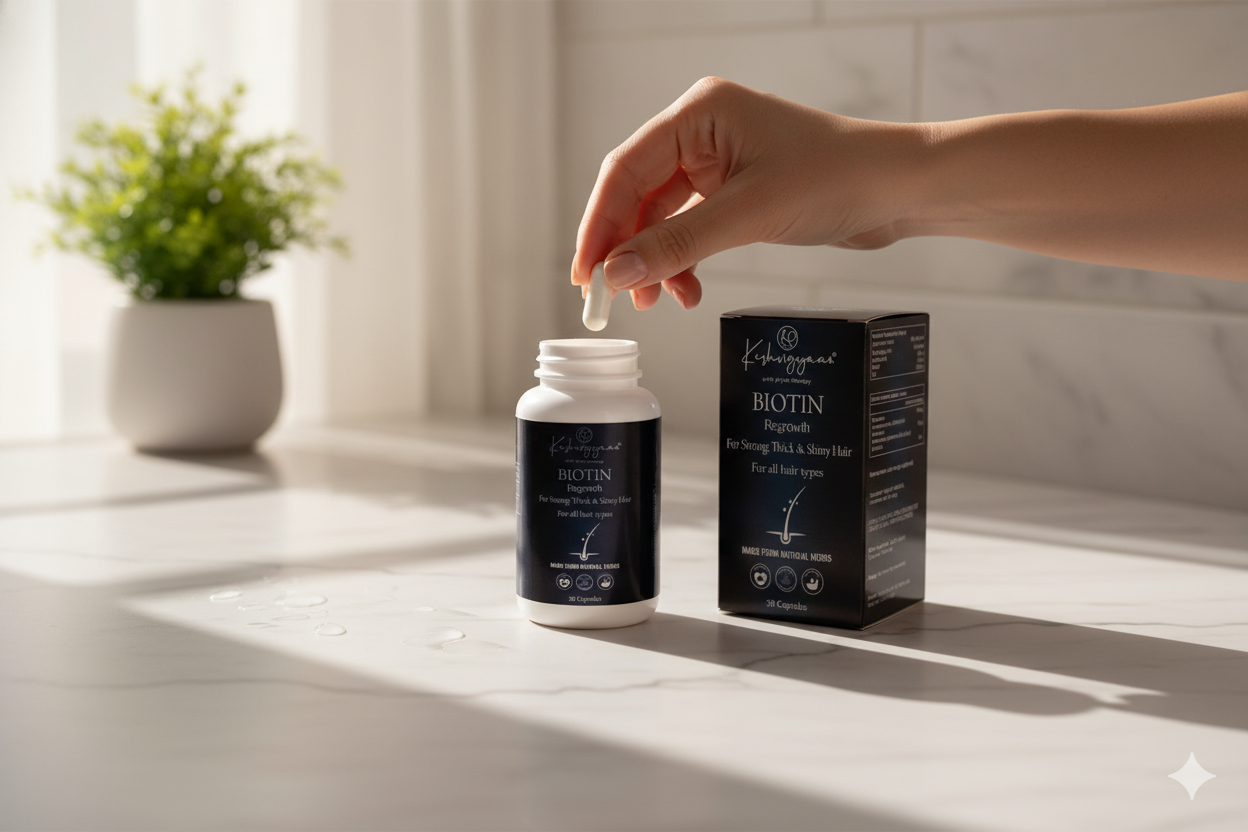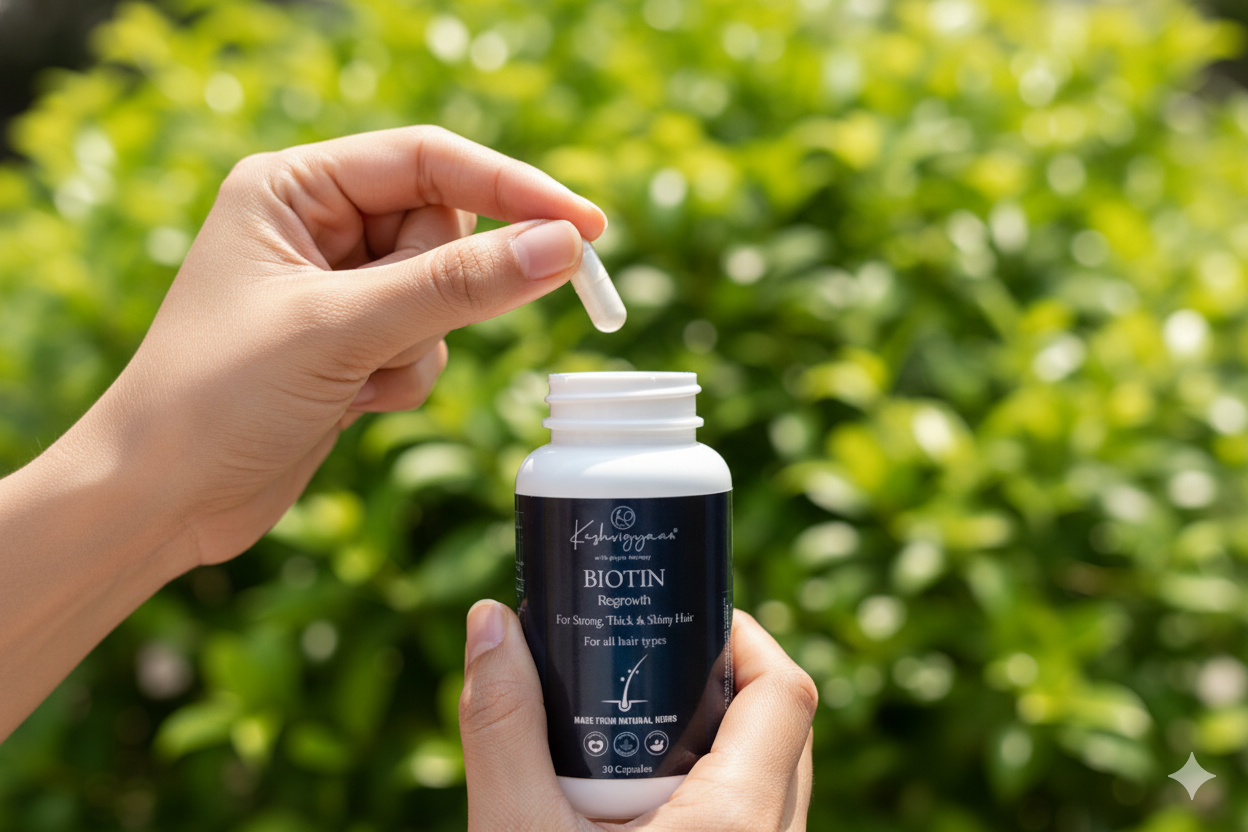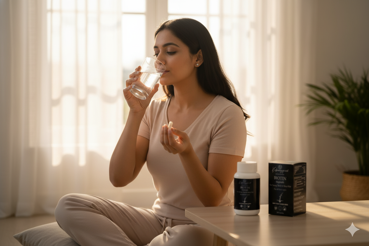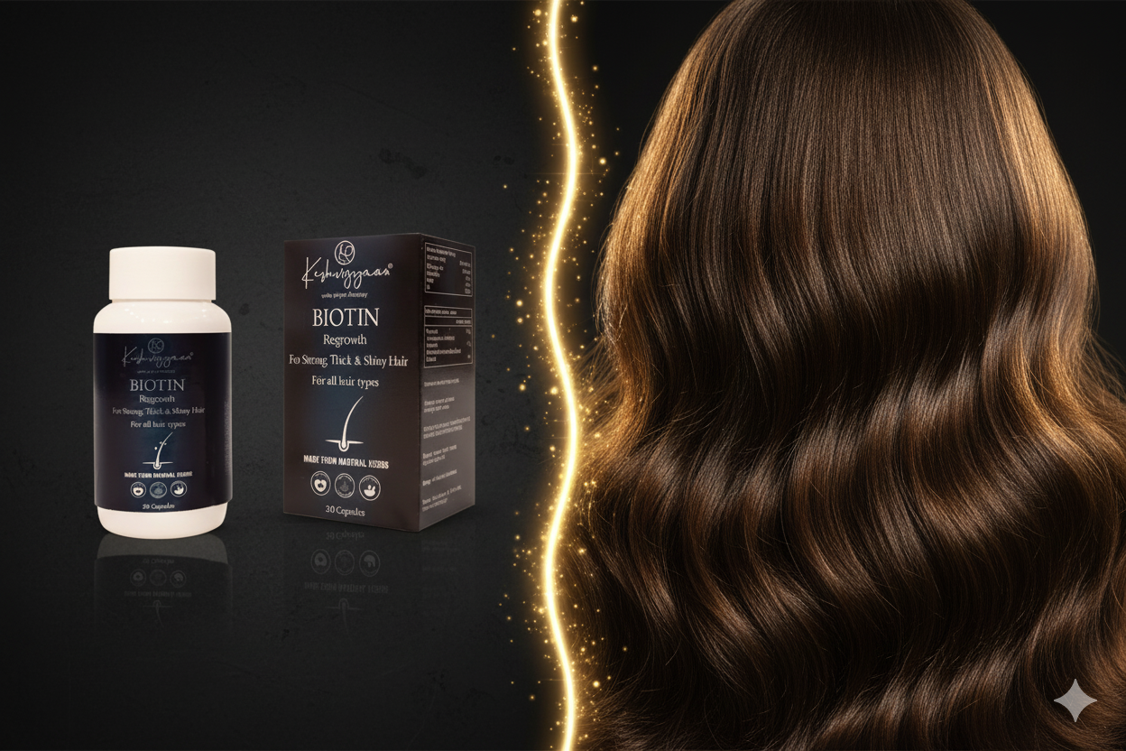 Biotin plays a crucial role in rebuilding the hair’s core protein—Keratin—which is responsible for strength, elasticity, and smooth texture. By supporting natural keratin production, this supplement helps protect hair from breakage, thinning, and damage caused by nutritional deficiencies or daily stress.
